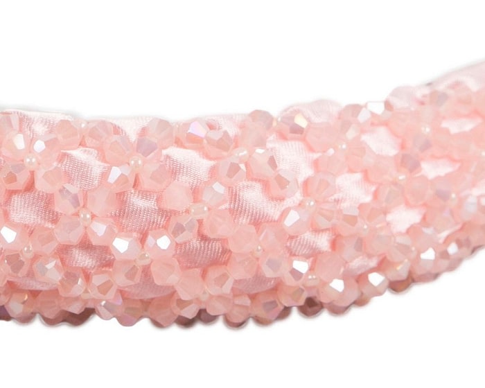 Fashion pink fascinator headband with sparkling beads and crystals decoration
