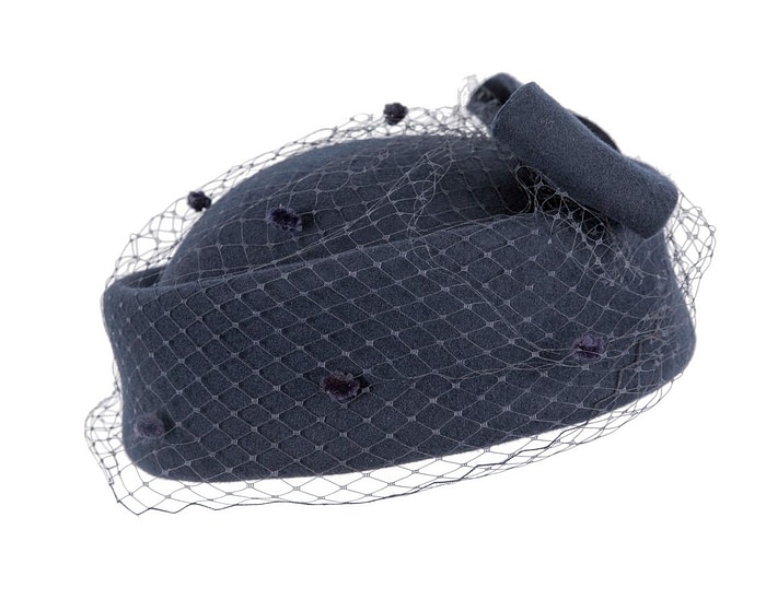 Large classic felt beret hat with stylish bow and face veil. This elegant creation will be a perfect addition to your next racing outfit or smart everyday wear.