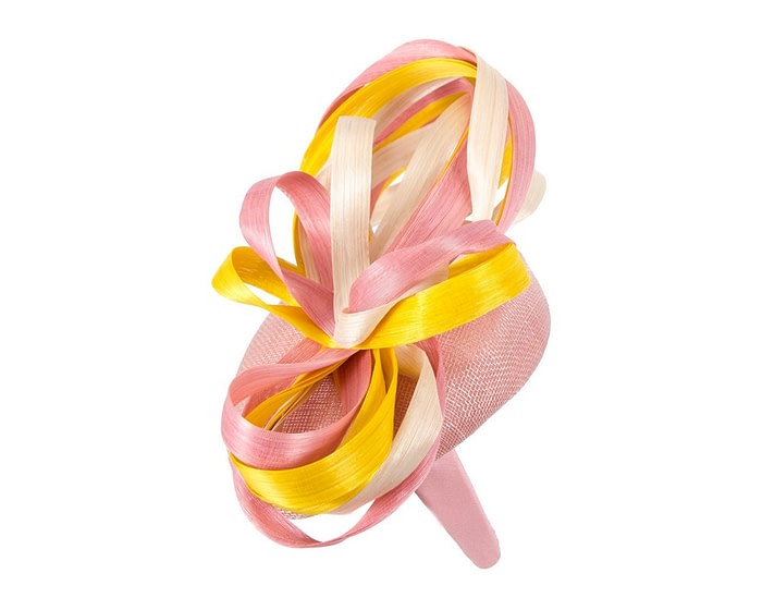 Enhance your look with a splash of vibrant colors with this Australian Made pillbox fascinator from Fillies Collection. This unique headpiece features a stunning combination of pink, cream and yellow loops placed on the pink pillbox. This fascinator will be a great addition to your next spring racing outfit.